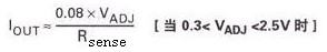 調(diào)節(jié)針可通過外置的直流電壓(VADJ)進(jìn)行過驅(qū)動(dòng),以獲得超過內(nèi)置的電壓基準(zhǔn),并調(diào)整輸出電流使其超出或低于額定值。此時(shí)的額定輸出電流為: